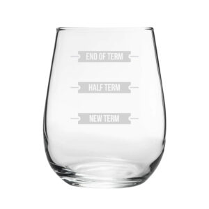 New Term, Half Term, End Of Term – Engraved Novelty Stemless Wine Tumbler