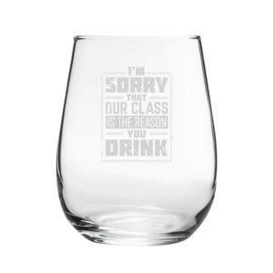I’m Sorry That Our Class Is The Reason You Drink – Engraved Novelty Stemless Wine Gin Tumbler
