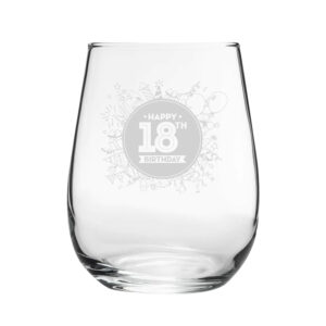 Happy 18th Birthday Round Design – Engraved Novelty Stemless Wine Gin Tumbler