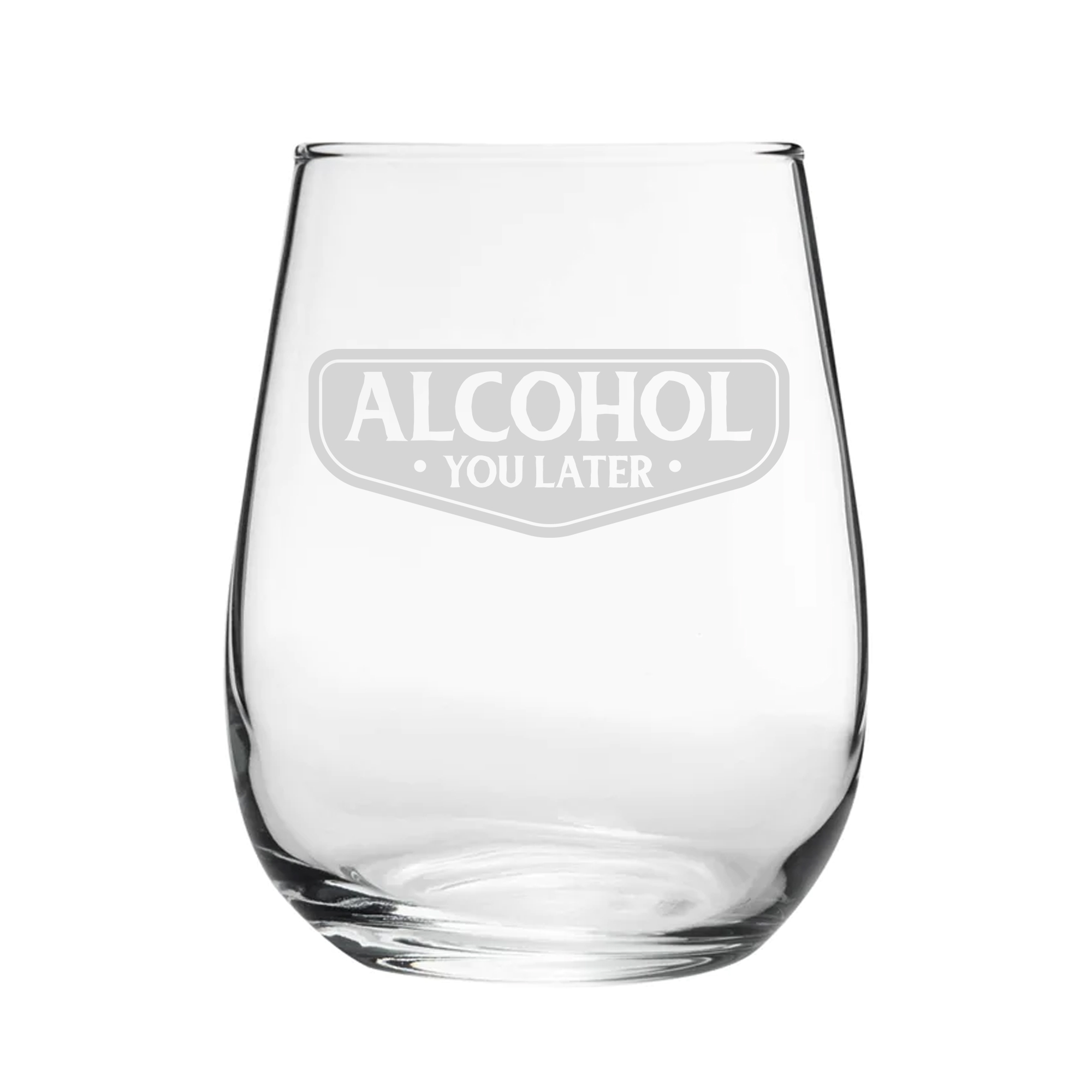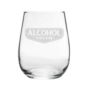 Give the gift of our novelty stemless tumbler! Featuring a “Alcohol You Later” design, this charming glass makes for the perfect gift. Engraved on a contemporary stemless goblet, this drinking vessel holds 360ml. By being engraved, the novelty design will be everlasting and won’t wash away when cleaned with by hand or in the dishwasher. Partnered with a fantastic gift box, this glass makes the perfect gift for any event, such as birthdays, Christmas and retirements; ready to be gifted, this glass is eager to bring smiles and make for a memorable present.
