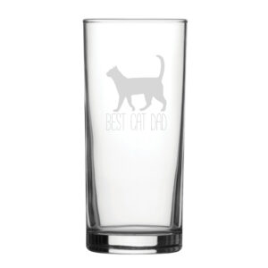 Gift the cat lover you know their own novelty hiball tumbler! Featuring a Best Cat Dad design, this makes for a great gift for any cat lover. Engraved on a traditional straight sided hiball tumbler, this drinking vessel holds 340ml. By being engraved, the novelty design will be everlasting and won’t wash away when cleaned with by hand or in the dishwasher. Partnered with a fantastic gift box, this glass makes the perfect gift for any event, such as birthdays, Christmas, Father’s Day and retirements; ready to be gifted, this glass is eager to bring smiles and make for a memorable present.