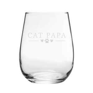 Gift the cat lover you know their own novelty stemless tumbler! Featuring a Cat Papa design, this makes for a great gift for any cat lover. Engraved on a contemporary stemless goblet, this drinking vessel holds 360ml. By being engraved, the novelty design will be everlasting and won’t wash away when cleaned with by hand or in the dishwasher. Partnered with a fantastic gift box, this glass makes the perfect gift for any event, such as birthdays, Christmas, Father’s Day and retirements; ready to be gifted, this glass is eager to bring smiles and make for a memorable present.
