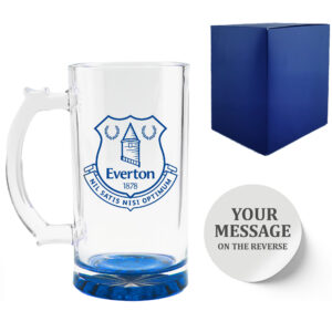 This classic pint glass is the perfect gift for someone who is an Everton fan. Make it personal with your choice of sentimental message or simply their name. You can also choose from a hand picked selection of fonts to suit any occasion, making it a thoughtful gift for Fathers Day or Birthdays. Whether drowning sorrows or toasting goals, you can show your support for your football team in style. Each glass is state of the art laser engraved, arriving bubble wrapped and gift boxed, ready to be gifted. The glass holds up to 570ml or 20oz, great for pouring refreshing cans of beer into while having space for rising foam. This glass is hand wash only, we recommend washing it before first use and between uses. We take pride in crafting each order precisely as specified, so please take a moment to double-check your personalisation details to ensure there are no spelling or grammar mistakes. If you have any issues with your order, please do not hesitate to contact us, as our customer service team will be happy to help.