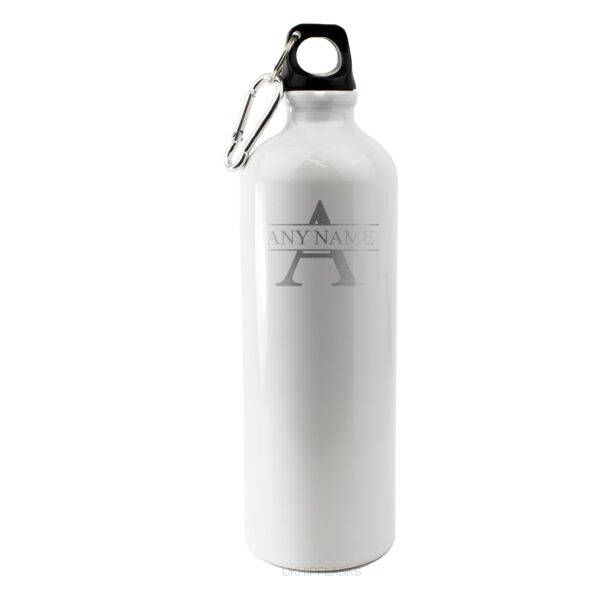 Personalise this 750ml Aluminium White sports bottle with any Initial and name. The perfect gift for someone with the need for hydration on the go.