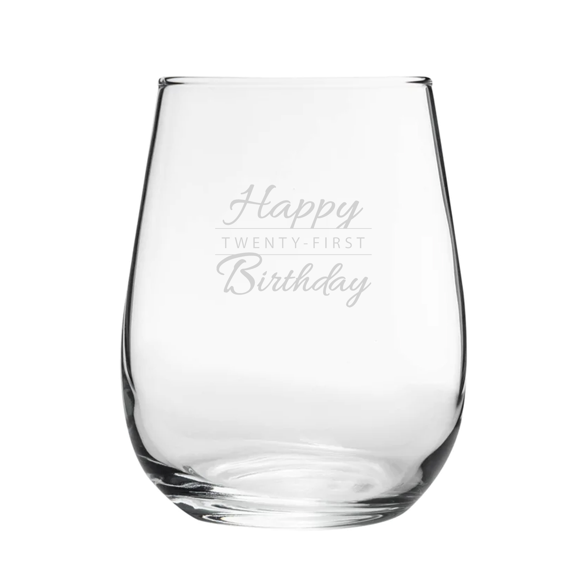 Happy 21st Birthday Modern Design – Engraved Novelty Stemless Wine Gin Tumbler