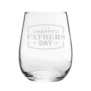Happy Fathers Day Bordered Design – Engraved Novelty Stemless Wine Gin Tumbler