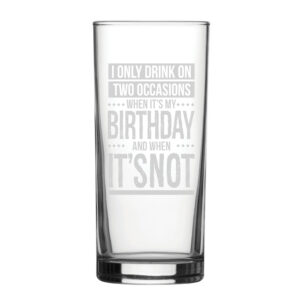 I Only Drink On Two Occasions, When It’s My Birthday And When It’s Not – Engraved Novelty Hiball Glass