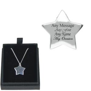Engraved Silver Necklace with Star Pendant
