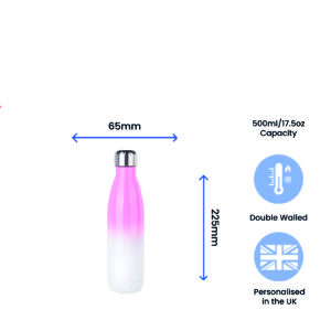 Printed Pink Gradient Thermal Bottle, Any Message, Stainless Steel 500ml/17oz