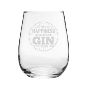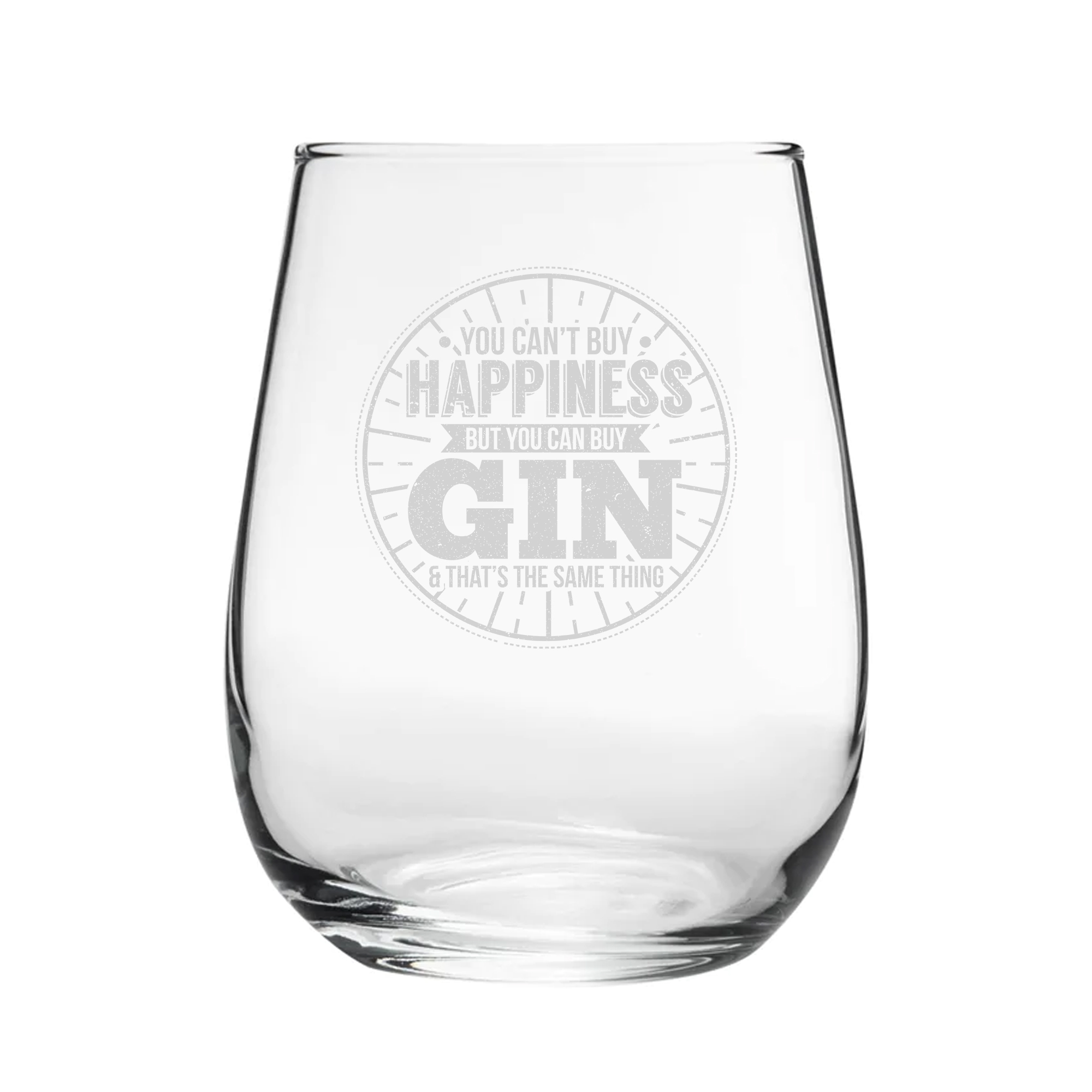 Remind everyone that happiness and gin are basically the same with our novelty gin glass! Featuring a “You Can’t Buy Happiness But You Can Buy Gin & That’s The Same Thing” design, this charming glass makes for the perfect gift. Engraved on a contemporary stemless goblet, this drinking vessel holds 360ml. By being engraved, the novelty design will be everlasting and won’t wash away when cleaned with by hand or in the dishwasher. Partnered with a fantastic gift box, this glass makes the perfect gift for any event, such as birthdays, Christmas, Mother’s & Father’s Day, and retirements; ready to be gifted, this glass is eager to bring smiles and make for a memorable present.